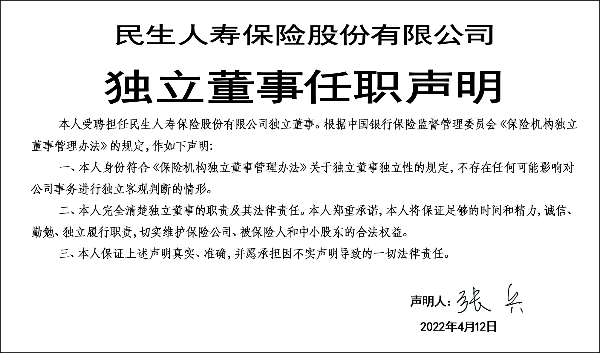 张兵独立董事任职声明请见此处。